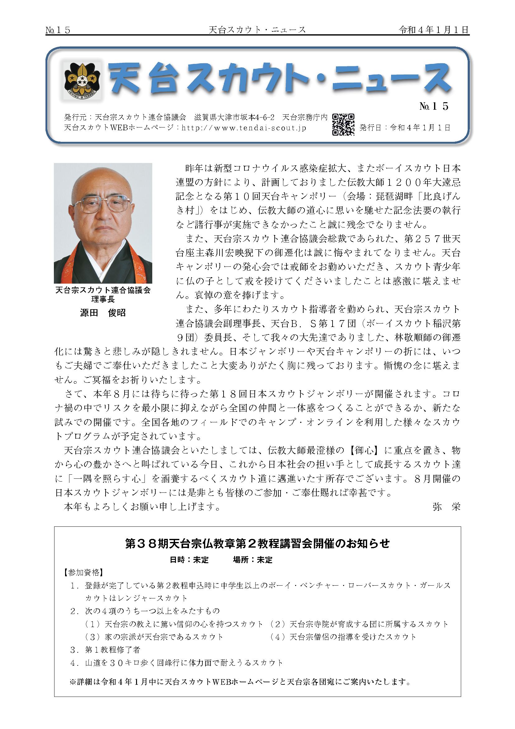 天台スカウトニュース第15号(令和4年1月1日付)を発行しました。