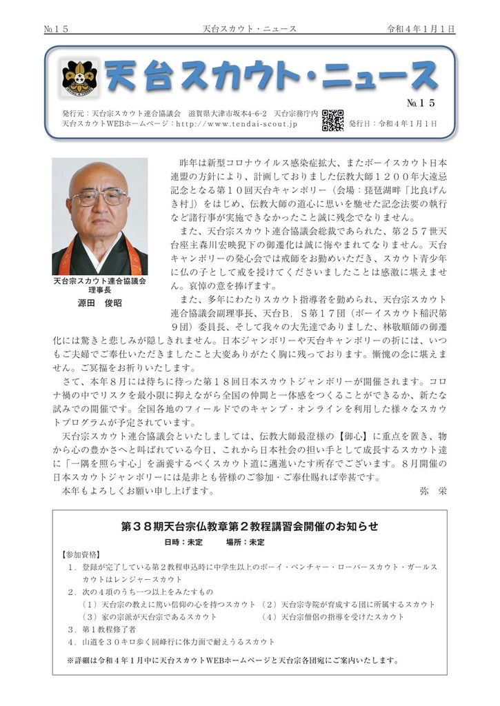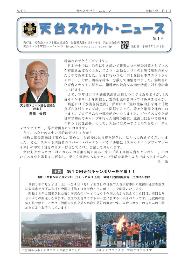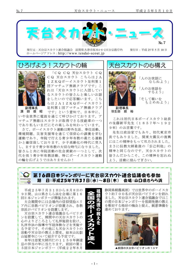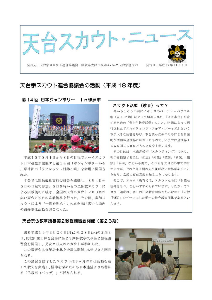 第15回日本ジャンボリーの報告と第8回天台キャンポリーの告知記事掲載。