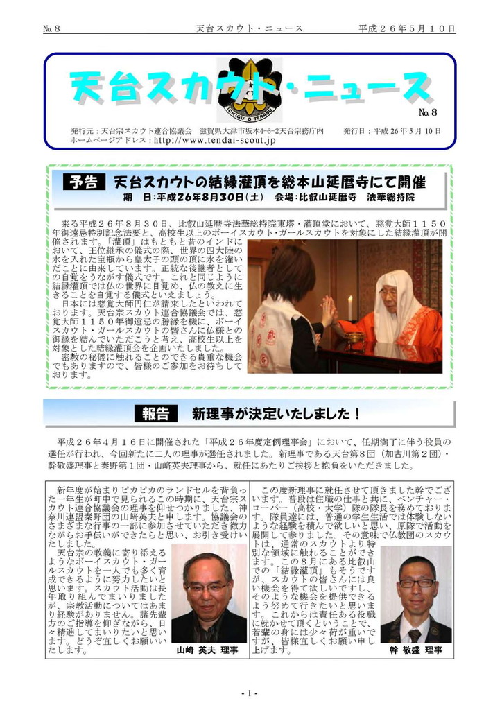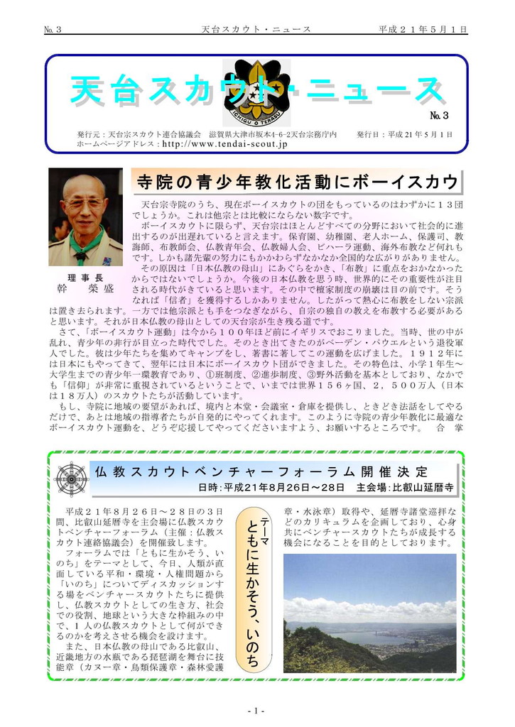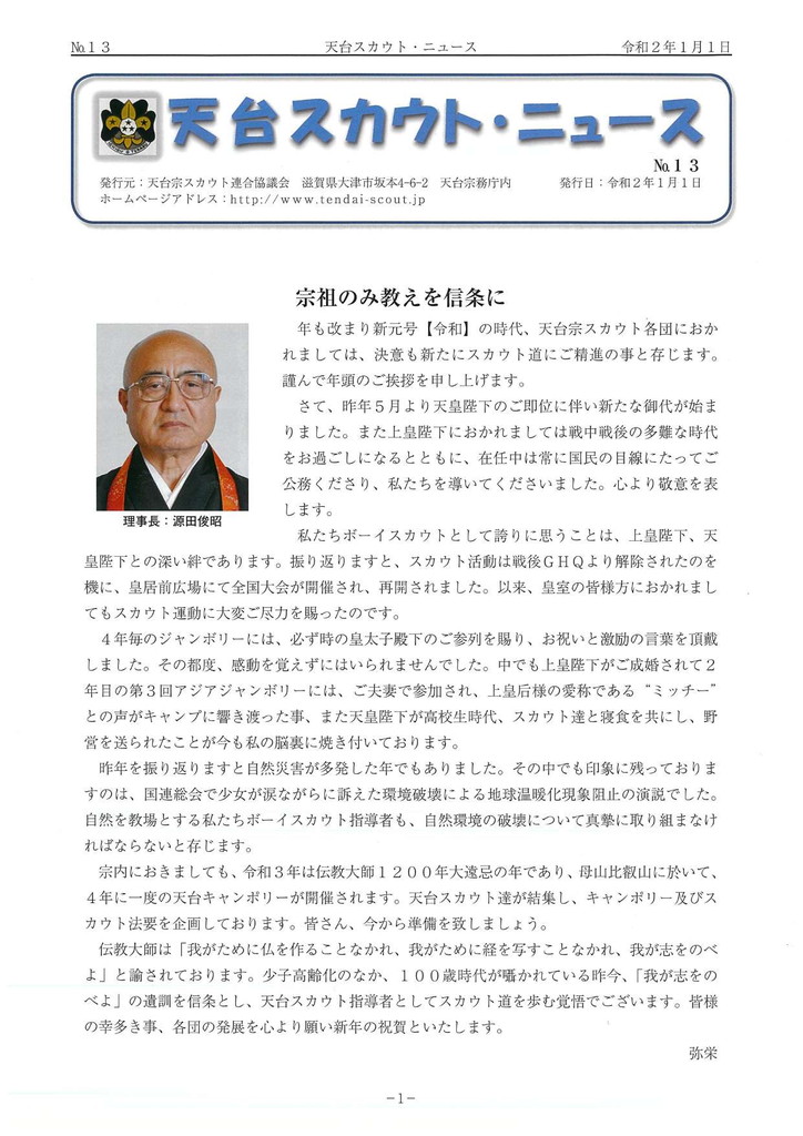 年一回の間隔で発行している天台宗スカウト連合協議会の広報誌『天台スカウトニュース』のご紹介です。