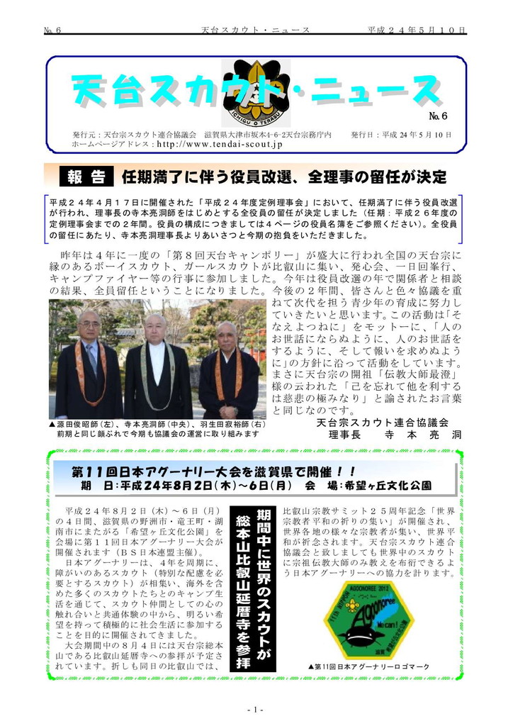 第8回天台キャンポリーの報告と第11回日本アグナリーの告知記事掲載。